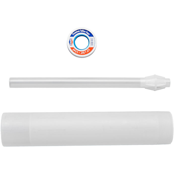 The new 12-inch standoff allows you to place the receiving container on the drum for easier transfer. All of these fittings are National Pipe Tapered and seal with PTFE Tap. Please purchase the correct pump for your liquid separately. Note: Variations in temperature, concentrations, etc., may affect chemical resistance, and so it is up to the customer to truly decide whether the components will handle what they are passing through the pumps. |