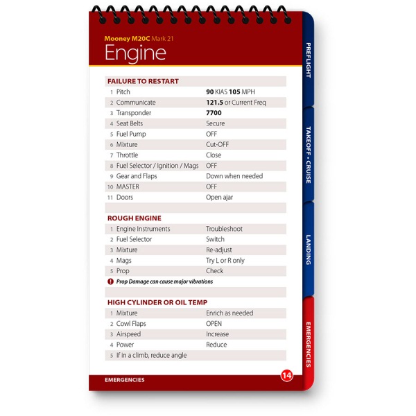 Get the most accurate, reliable aircraft checklist on the market with a Qref checklist. The procedures cover every aspect of flight, from preflight through takeoff, cruise, landing, and a comprehensive emergencies/abnormals section. Emergencies are arranged by system, meaning no more digging through pages to find the right section. Qref’s trademark is creating checklists that are easy for pilots to use. A major difference in aircraft checklists between Qref and others is the level of experience and expertise that go into every procedure. The Qref team of Master CFIs have over four decades of combined active flight instruction and flying experience at all levels of industry, with instruction and flight time in this aircraft. Further, they have taken advantage of the past 20 years of checklist design research. Qref’s team incorporates industry-best practices into these checklists and forthcoming publications. They not only create checklists, they use them in daily instruction and flying. Qref checklist design features a larger, more readable font, comprehensive procedures sectioned into tabs loaded with useful reference and conversions, and non-glare laminated pages. A complete table of contents makes finding the exact procedure quick. Find out for yourself why Qref aircraft checklists are fast becoming the Gold Standard in aviation. |