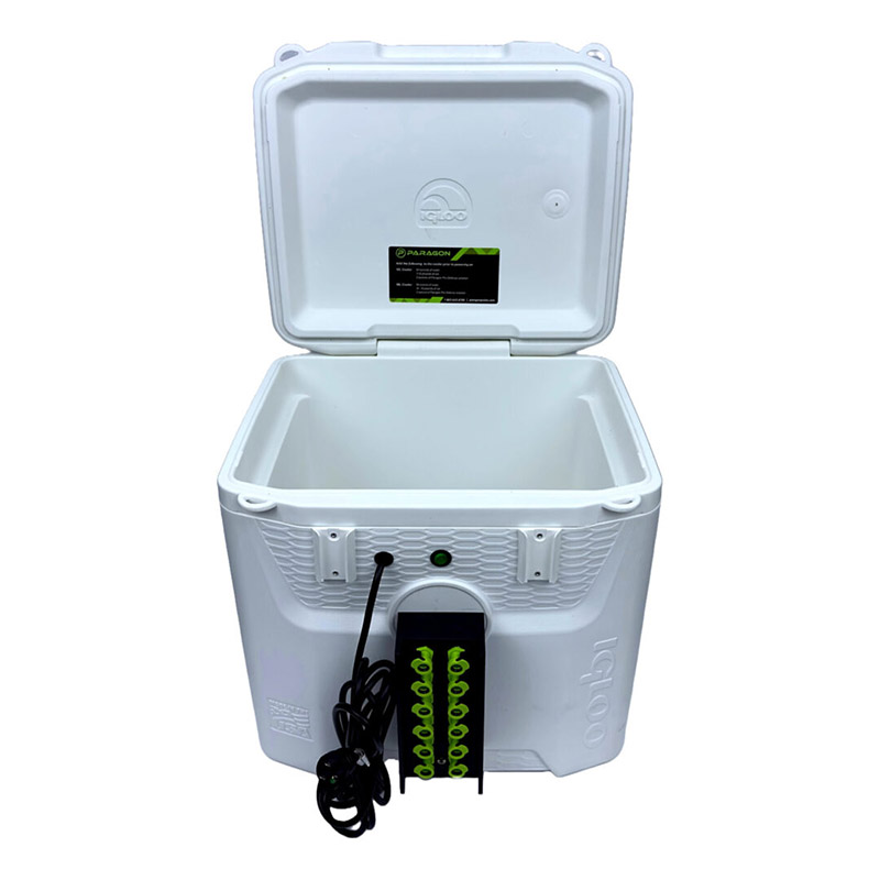 Paragon’s Viking Extreme Cooler 110V cooler is Paragon’s option for those needing cooling with access to 110-volt power. The larger capacity Viking Coolers 110v are built to be durable and efficient with its 110-volt pump providing constant circulation of cold water through multiple Paragon cooling garments simultaneously. The larger capacity Viking Cooler 110v works exclusively with Paragon cooling garments. |