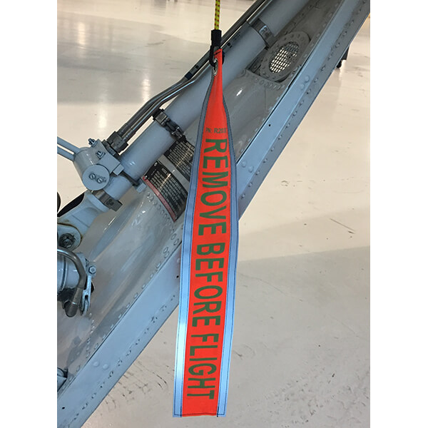 This 3x20" flag is designed to meet the abrasion resistance, weatherability, and self extinguishing/flame retardant requirements of wide body and other long range business jet OEM customers. The materials and construction meet NAS-1756 / NAS-1091 technical specifications for remove before flight flags. The color specifications, for obvious reasons do not meet the standard. If you're looking for a very durable gear pin flag that's designed for the abuse of quick turns and tight stowage, this is the right product. |