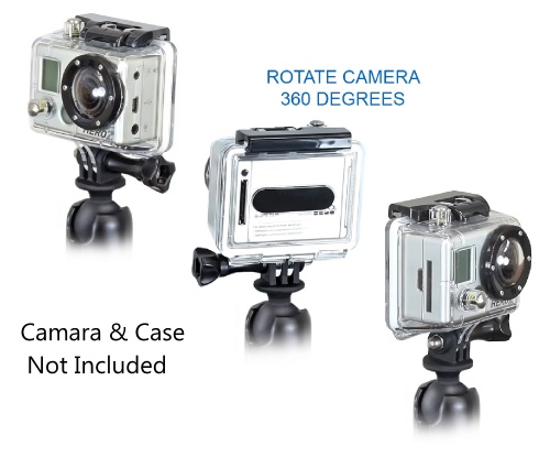 The RAP-B-202U-GOP1 consists of a 1" diameter rubber ball, connected to a custom GoPro® adapter. The adapter attaches directly to the under-side of the camera, replacing the factory mounting bracket. Compatible GoPro® Cameras: HD HERO HD HERO2 HD HERO3 HD HERO 3+ HD HERO 4 |