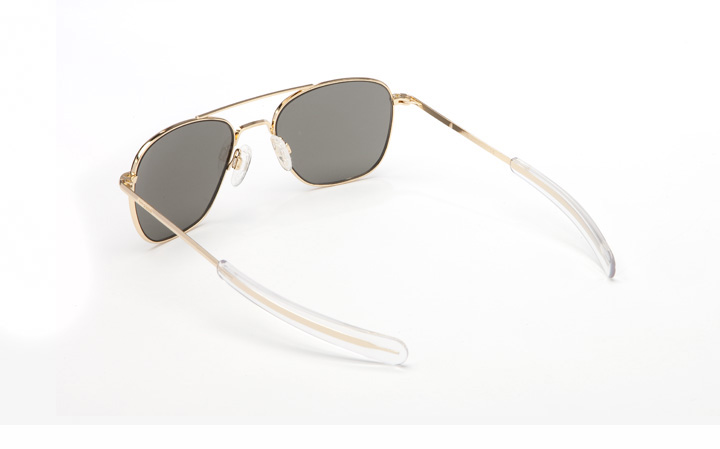 23k Gold Frame, Grey Lense, Bayonet Temple Originally built for the U.S. Military, our flagship Aviator Sunglasses surpass rigid mil-spec standards. Standard issue since 1982, these are battle tested and relevant to the most rigorous and demanding use. Worn by pilots, taste-makers, and those who demand the best.
