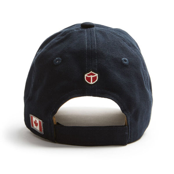Felt appliqué logo with direct embroidery. Red Canoe logo and woven Canada flag patch on back. |