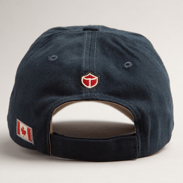 Classic Canadiana. Direct embroidery on the front with a Red Canoe shield and woven Canada flag patch on the back. Imported. |