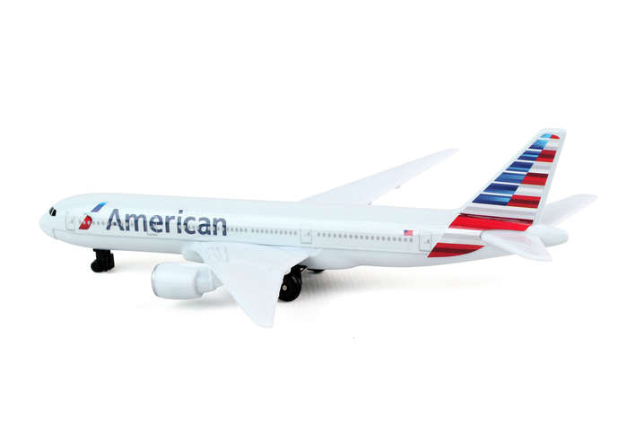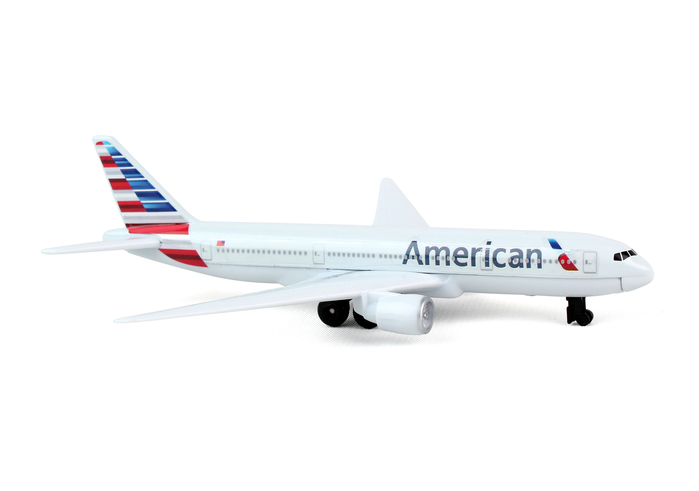 These charming individual toys can be used or added to the playsets for extra fun. This American Airlines airplane is made out of die-cast metal and plastic. Logo and markings are all certified by American Airlines! The model is approximately 5.75 inches in length and has a 5.5 inch wingspan. |