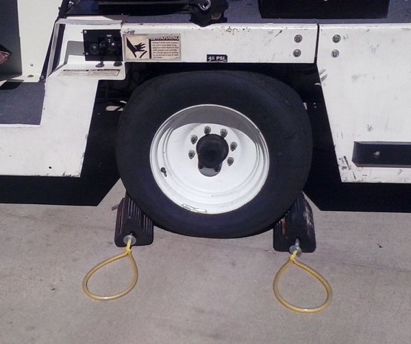 “Safe T Chock Line” pull rope is a patented product invented to prevent injuries while chocking wheels on aircraft, GSE, trucks and trailers. The Safe T Chock Line is a high visibility poly braided rope with a vinyl tube sleeve for a handle that will not freeze or cause rope burns. It is also sleeved to slide thru the center hole in the chock blocks. It can easily be modified to fit almost any type of chock block. This type of chock block pull rope is designed to reduce wrist, hand and finger injuries as well as making it safer to chock and un-chock aircraft and vehicles. Actual chocks not included. |