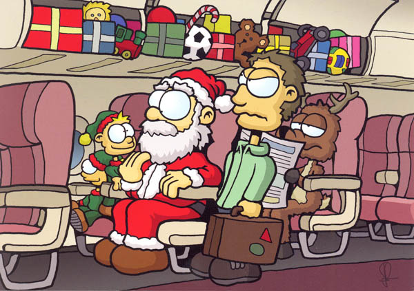 Christmas Greeting Cards - Santa Filling Overhead Bins 10 Pack. 5" x 7", Blank Inside & 10 Pack. |
