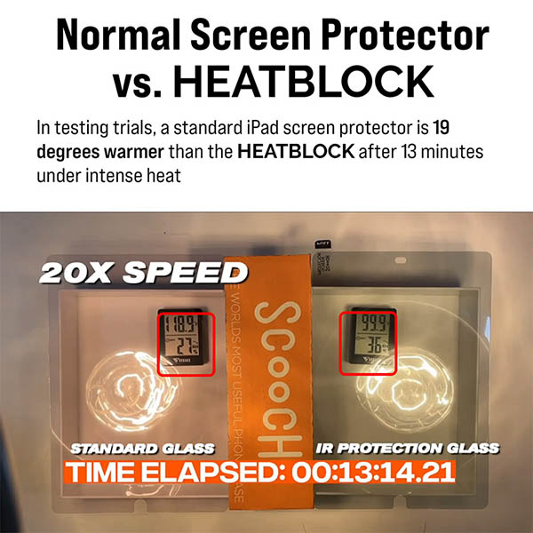 Whether you’re using your iPad for work, navigation, or entertainment, the Scooch HeatBlock keeps your device running smoothly in even the most demanding conditions. It’s more than just a screen protector—it’s a game-changer for anyone who relies on their iPad under the sun. |