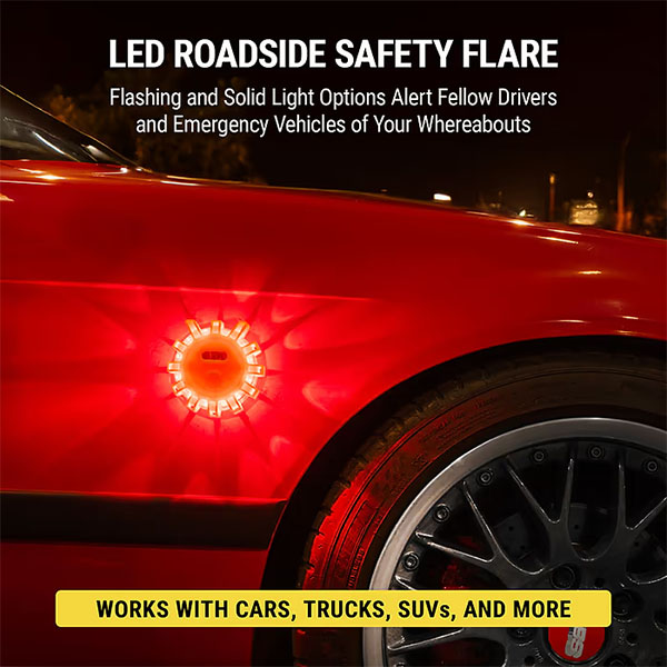 • Safer, easier to use, longer-lasting, rain-resistant, and re-usable LED roadside flares make the old ignitable road flares obsolete.