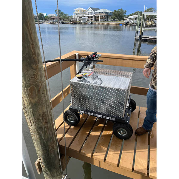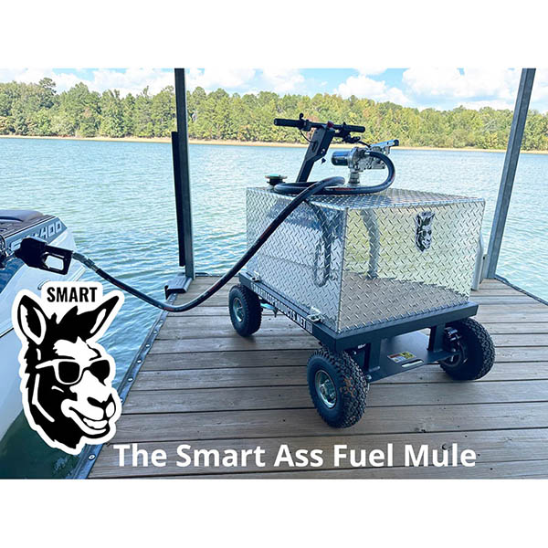 Powerful and Built Tough: Transport 50 gallons nearly effortlessly with the FuelMule's sturdy construction and overbuilt design, even on loading ramp inclines up to 22 degrees.. With a 750w Brushless IP65 sealed drive motor and off-road wheels/tires, the Smart Ass FuelMule Motorized 50 gallon gas caddy with pump conquers darn near any terrain effortlessly. It's powerful motor ensures easy climbs and the careful design ensures precise maneuvering, making it ideal for transporting fuel to any destination, on or off-road. Simple to Operate: Designed for rough terrain and tight spaces, the Smart Ass FuelMule boasts user-friendly controls like a thumb throttle and hand brake to allow you to Start, stop, and climb hills and ramps effortlessly. And uses an automatic shutoff fuel nozzle to prevent spills. Rechargeable batteries offer several trips to fuel your boat or whatever you're fueling, easily recharged with the included charger. Refuel faster than ever: With a powerful 15 gallons per minute electric pump, refuel FAST with the Smart Ass FuelMule, outpacing most gas station pumps. That's right, the pump on this thing is likely faster than the gas station you'll fill it al. Safety is built right in: Hydraulic disc brakes ensure safe control and easy stops even fully loaded on ramps, and a myriad of UL and DOT approved components along with our partnership with Intertek for design review and risk analysis, we've put nearly 4 years of refinement and testing into building the best gas caddy ever made, and we've done it right. Making every effort to ensure reliable and safe performance. You're going to love it. Environmentally Friendly: Say goodbye to spills with the leak-proof design and auto-shutoff nozzle of the Smart Ass FuelMule, providing a cleaner way to transport and fill fuel on your boat dock, or anywhere else you need it. This amazing gas caddy with pump is the cleanest eco-friendly way to fuel your boat or equipment. Versatile: From boats to construction equipment, to agriculture and farming, to the ATV ORV course and the racetrack, the Smart Ass FuelMule is the ultimate Fuel Caddy and fills all kinds of refueling needs. Letting you bring fuel where you need it. |