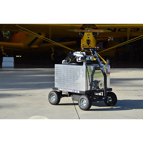 The Smart Ass Fuel Mule electric fuel caddy solves a problem many of us have in our daily work or hobbies that has never been sufficiently solved before. And after getting that feedback from aviators, we here at Smart Ass Products have now added a package of upgrades specifically to better adapt this most amazing of motorized electric gas caddies specifically for AVGAS/100LL use and Aviation use. For the countless airplane/flight lovers that live in fly-in communities and airparks across the USA and elsewhere. For the farmer/agricultural flyer monitoring and crop dusting their fields. Where the pilots don't typically have fuel readily available onsite as it's a small privately owned air strip being used. We've got your solution in the Smart Ass Fuel Mule - Aviation Edition. Built Tough for Aviation: The Fuel Mule's rugged construction allows you to easily transfer 50 gallons, even on ramps with 22-degree inclines. The Smart Ass Fuel Mule Motorized 50-gallon gas caddy is powered by a 750w Brushless IP65-sealed motor and off-road tires, making it ideal for airparks, hangars, and aviation fueling on paved or unpaved airstrips/taxiways. Easy to use: Designed for confined areas and navigation through tight spaces (doorways even) and rugged terrain, it has a thumb throttle, hand brake, and an automated shutoff fuel nozzle to eliminate spills. Rechargeable onboard batteries allow for endless journeys to fuel your aircraft or equipment. One charge typically lasts 6-8 uses or more. Fast Refueling: Using a 15-gallon-per-minute electric pump, the Smart Ass Fuel Mule can refill planes faster than most gas station pumps can fill the Fuel Mule Caddy to begin with. Safety First: Hydraulic disc brakes, UL and DOT-approved components, and comprehensive safety testing ensure dependable performance when fueling in airports or hangars. Eco-responsible and Versatile: The leak-proof, auto-shutoff nozzle eliminates overfill spills, making it ideal for environmentally responsible aviation fueling. The Smart Ass Fuel Mule is ideal for all of your small aircraft refueling needs. |