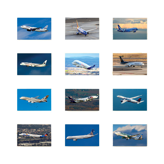 Twelve different COMMERCIAL AIRCRAFT types and carriers, from jumbo jets to island hoppers. This calendar is loaded with great shots of the "big birds" for everyone in the industry. |