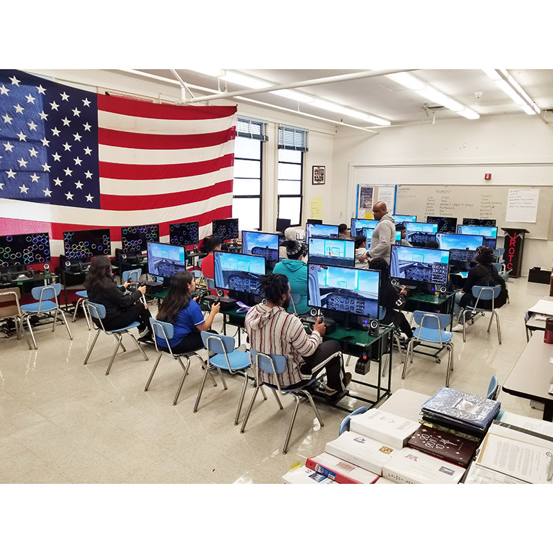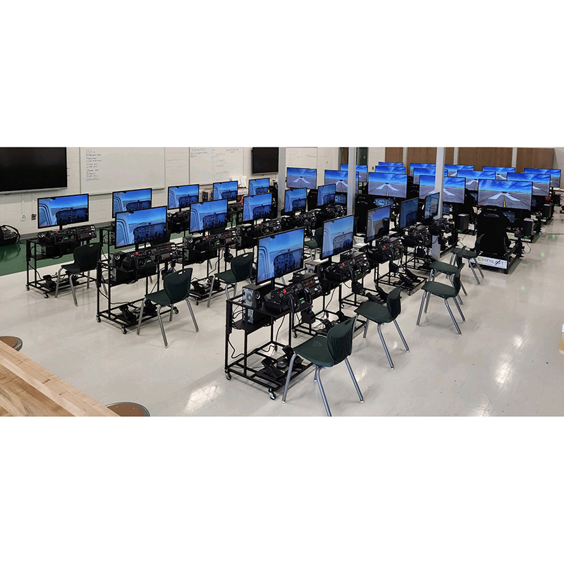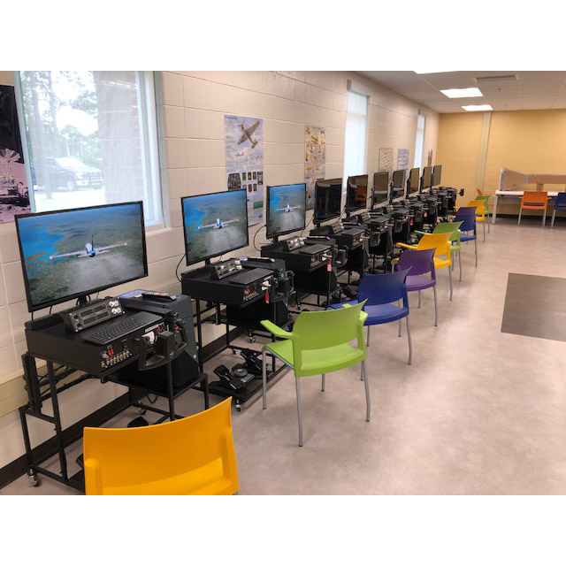 The Edustation Pro delivers the full cockpit experience our all new Metal Flight Deck with “Hands On” NAV & COM Radios, Altimeter, Switch Panel, Trim, Flaps and autopilot. Fully capable of flying ILS approaches and VOR and GPS Direct flight plans. The Edustation Pro includes a 32" HD Wide Screen and now a 32" Curved Monitor is an available option for an additional $195.00 (shown). The Edustation Pro is capable of flying from every airfield on the planet in one of 50+ aircraft. Students will plan and fly flights using basic algebra, geometry, trigonometry, physics, geography and topography. Edustations are designed for classrooms where they can be nested together. Each Edustation has our tutored simulator learning missions teaching all of the fundaments by flying through boxes in the sky. Using our Visual learning First EducationTM approach engages students by watching a video about the content before reading it. Our curriculum is used in STEM labs, Science/Physics/ Engineering Design classrooms, Flying/Aviation Clubs, after school programs and JROTC programs. Teaching the principles of flight leverages STEM concepts in; geometry, algebra, trigonometry, physics, meteorology, geography and topography. Dimensions: 30.5” wide, 31” long, 58” high |