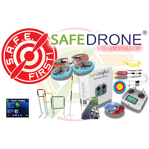 SAFEDrone 1 kit includes everything you need to implement a reliably SAFE drone program in your home or school. The protocol is to train and qualify students in a multi-level drone simulation learning program before ever taking control of a quad copter. Once becoming a Certified Pilot students will learn to fly guarded-prop quad-copters in the classroom, repeating similar exercises from the simulation. Successful students can design and fly through an obstacle course for classrooms. SAFEDrone 1 is an introduction kit.