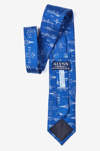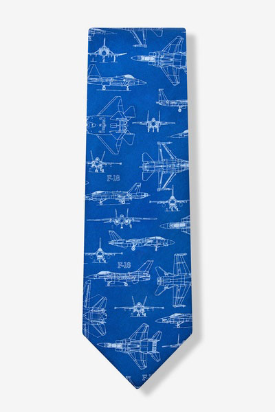 You don't need to be a Top Gun to satisfy your need for speed. Not with this silk tie, at least. This bright blue tie by Alynn Neckwear comes equipped with a series of military fighter jets outlined in white for the aviation aficionado in all of us, top gun or not. |