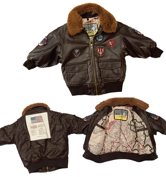 For the Top Gun of the future, this adorable jacket is a must have! The Top Gun G-1 jacket was designed and created for the US Navy's elite Fighter Jocks.The numerous patches certify the service history of the Navy's best pilots and is worn with great pride. Lining illustrates escape map of Western Europe. |