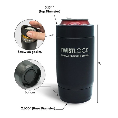• Securely holds 12oz cans with a screw-on gasket.