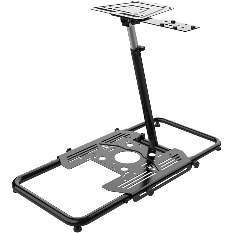 Complete your flight or racing simulation setup with the Turtle Beach® elocityOne™ Stand for the VelocityOne™ Flight Universal Control System & Rudder Pedals and other flight & racing simulation accessories. Quick release latches let you adjust the height, angle, and length of the Stand, plus it is fully reversible with upper and lower mounting platforms that can tilt to adapt to your size and environment. Solid steel mounting platforms are predrilled to work with VelocityOne™ Flight & VelocityOne™ Rudder products and are also compatible with other 3rd party simulation accessories. Anti-wobble, adjustable rubber feet keep the Stand firmly planted, and a convenient fold flat design lets you easily stow away your setup.