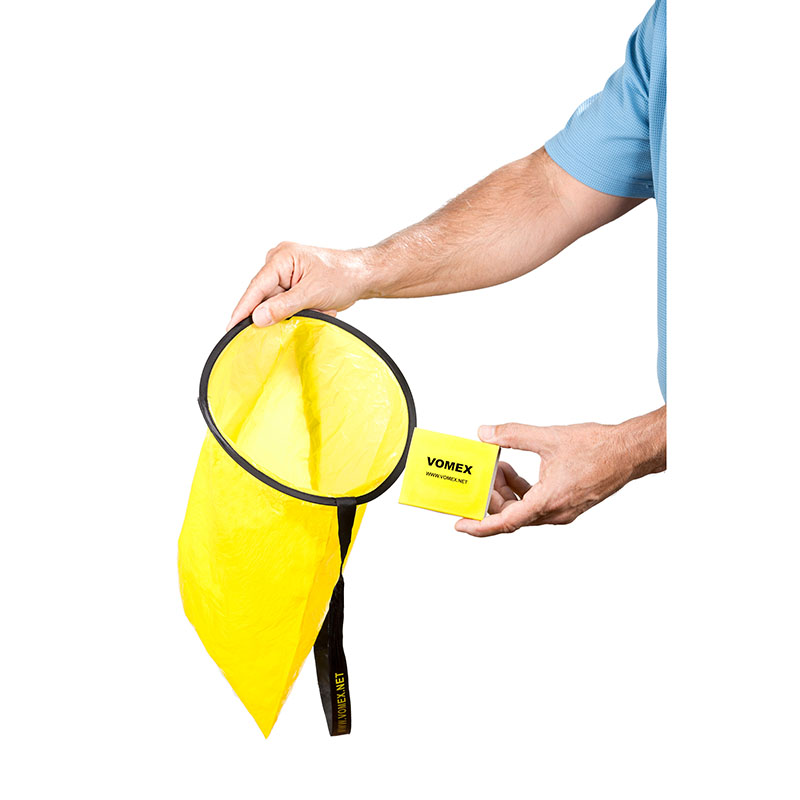VOMEX offers a product that makes a distasteful event easier to address. VOMEX emesis bags are simple and uniquely designed [US Patent #: D791,943 S]. With VOMEX you just POP, USE and DISPOSE! |