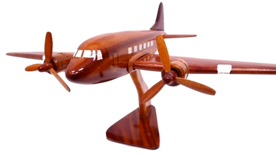 This beautiful DC-3 model made of handcrafted mahogany has three coats of glistening polyurethane finish for extra high gloss and deep wood grain. Made to scale- this craft is a great gift or room accent. |