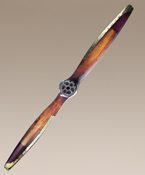 At one time flight was all about wood and canvas, and even bamboo. A local cabinetmaker busy with the fuselage, a cane weaver making a cockpit fauteuil. Flight was accomplished with basically one handle to pull and a couple of gauges to check. No GPS yet. Visual sighting by identifying roads and churches. Aficionados of our amazing assortment of early flight artifacts will welcome a new and enticing metal clad propeller replica. Dating back to a time when pioneers conquered the air. Hand sculpted in wood, distressed and finished in an aged, smooth patina.