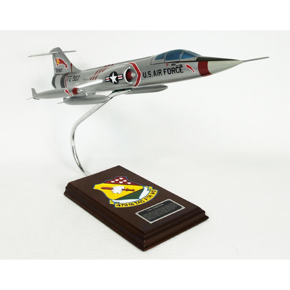 The Lockheed F-104 Starfighter was a single-engine, high-performance, supersonic interceptor aircraft that served with the United States Air Force (USAF) from 1958 until 1967 and continued in service with the Air National Guard until it was phased out in 1975. Because of its physical appearance and performance, the F-104 has often been called the ""missile with a man in it."" The design was a product of the Korean War, and was unique in several respects. The F-104 Starfighter had its first flight on March 4, 1954 and first introduced on February 10, 1958. The F-104C variant was the tactical strike version of the Starfighter. The first F-104C, unofficially designated YF-104C, took off on its maiden flight on July 24, 1958. The F-104C was powered by a General Electric J79-GE-7 engine rated at 10,000 lb.s.t. dry and 15,800 lb.s.t. with afterburner. This thrust was almost a thousand pounds greater than the -3A/3B of the F-104A/B. This increase in power was made possible by increasing the diameter of the turbine by 3 inches. The F-104C was designed mainly for delivery of tactical nuclear weapons, which it could carry on a centerline pylon attachment which had a 2000-pound capacity. It could carry the Mark 28 and Mark 43 nuclear weapons. Although some references claim that a 225 US gallon drop tank could be carried on this centerline pylon, it was exclusively a weapons pylon and was not plumbed to take fuel ports. The Starfighter was the first aircraft to hold simultaneous official world records for speed, altitude and time-to-climb. It set a world altitude record of 103,395 feet on Dec. 14, 1959 and flown by Captain Joe B. Jordan. This was the first time that an aircraft taking off under its own power exceeded the 100,000-foot mark. During the flight, the aircraft also reached a speed of Mach 2.36 and established a time-to-height record to 30,000 meters (98,425 feet) of 15 minutes 4.92 seconds from brake release. |