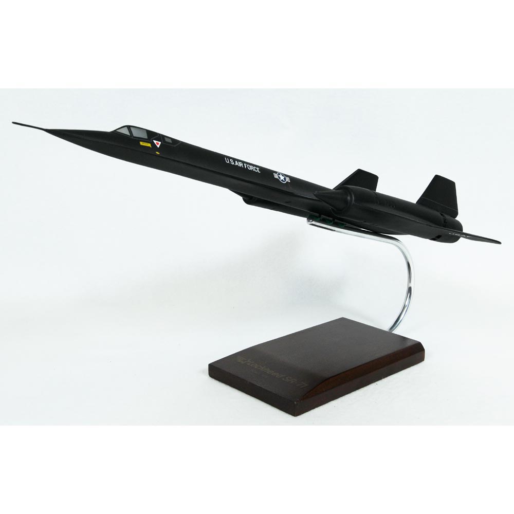 Length is 18" and wingspan is 9". Scale is 1/72. The SR-71 was designed by a team of Lockheed personnel known as the ""Skunk Works."" In the late 1950s, the SR-71s basic design originated in secrecy, with the aircrafts designation as A-11. Its existence was publicly announced on February 29, 1964 by President Lyndon Johnson, the time when he announced that an A-11 had flown at sustained speeds of over 2,000 miles per hour during tests at Edwards AFB, California. Its A-11 design development as a strategic reconnaissance aircraft began on February 1963. The first SR-71A arrives at Kadena AB to replace. The SR-71As maiden flight (in ""Big Tail"" configuration) was on December 3, 1975. There were two SR-71s at Dryden with the assigned NASA tail numbers, NASA 844 (A model) with military serial 64-17980, NASA 831 (B model) with military serial 64-17956, which was manufactured in September 1965. There was another A model, the NASA 832 with military serial 64-17971 and was manufactured in October 1966. The A model was returned to the USAF inventory and was the first aircraft reactivated in 1995 for reconnaissance purposes. The SR-71A has a crew capacity of two. It has a maximum speed of Mach 3.2+ and a combat range of 2,900 nmi. There were 32 SR-71s built, with 29 as SR-71As for operational missions. SR-71 remained the worlds fastest and highest-flying production aircraft throughout its operational existence. |