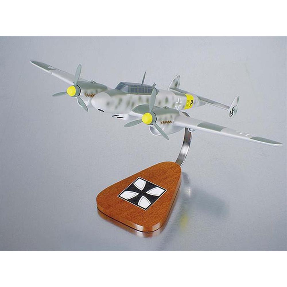 The Messerschmitt Bf 110 was designed in 1934. It made its first flight on the 12th May 1936. The Bf 110 originated from a Reichsluftfahrtministerium requirement of 1934 for a long-range escort fighter or the so-called Zerstorer ""Destroyer"". The aircraft was designed by Prof. Willy Messerschmitt, a legendary German aircraft designer and manufacturer born in Frankfurt am Main. The Bf 110 is one of his best designed aircrafts that won the RLMs multi-purpose fighter contest. This long-range multi-seat escort fighter is possibly the most difficult of all combat aircrafts to design. This is the why no successful machine in this category emerged during the World War II. Messerschmitt possessed no past experience with twin-engined military aircrafts when he commenced his work on the Bf 110. His best warplane, the single-seat Bf 109, was conceived the summer before that. At that moment, the most powerful aero engine of national design available was the Junkers Jumo 210A of 610 hp. It was apparent from the beginning that a couple of such engines would be insufficient to provide the power needed for the comparatively big and heavy fighter envisaged. However, the Daimler-Benz Aktiengesellschaft was actively engaged in developing a new twelve-cylinder liquid-cooled inverted-vee engine: the DB 600. And on the assumption that such engines would be available for his prototypes, Messerschmitt began the design of the Bf 110. During early 1944 nearly 60% of the whole German night-fighter force was composed of variants of the Messerschmitt Bf 110. A total of about 6,000 of these aircrafts were built before the manufacturing ended. |