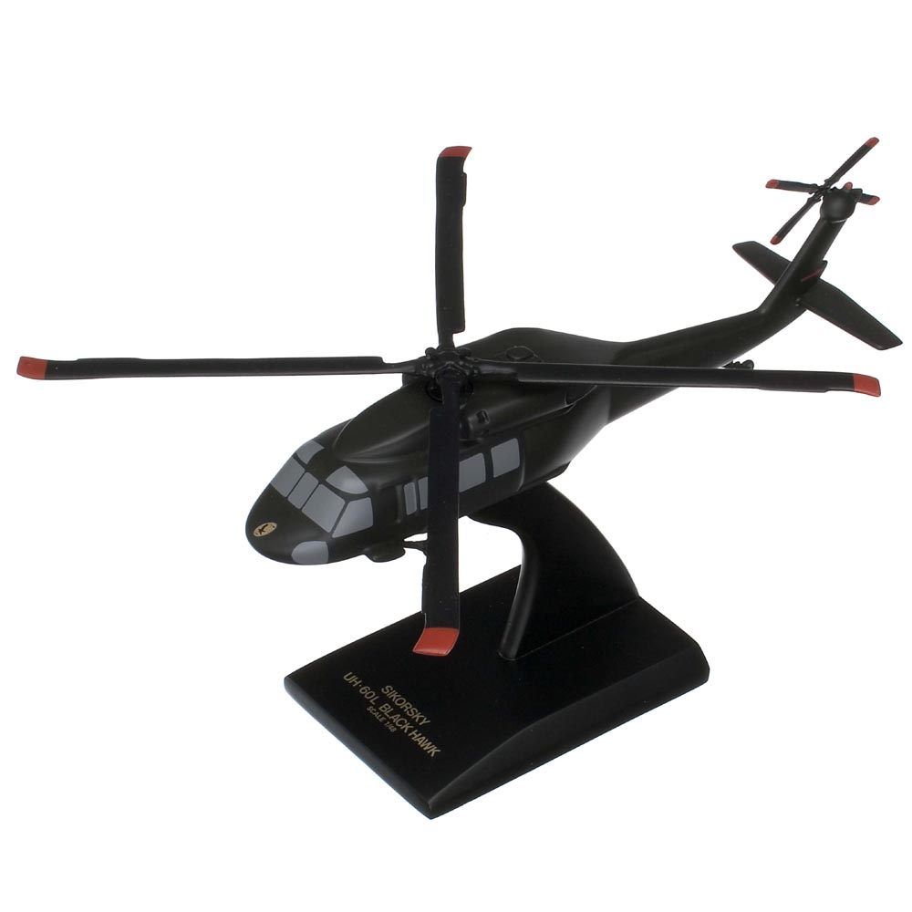 The UH-60 Black Hawk is the Armys front-line utility helicopter used for air assault, air cavalry, and aeromedical evacuation units. It is designed to carry 11 combat-loaded, air assault troops. Scale: 1/48 scale model Wing Span: 13.5" Length: 12" |