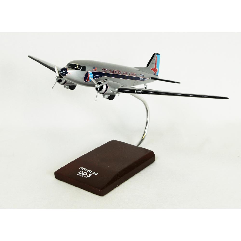 The DC-3 Eastern Douglas was engineered by a team led by Chief Engineer Arthur E. Raymond, and first flew on December 17, 1935 (the 32nd anniversary of the Wright Brothers flight at Kitty Hawk). The aircraft was the result of a marathon phone call from American Airlines CEO Cyrus Smith to Donald Douglas requesting the design of an improved successor to the DC-2. The amenities of the DC-3 Eastern Douglas (including sleeping berths on early ""DST"" -- Douglas Sleeper Transport -- models and an in-flight kitchen) popularized air travel in the United States. With only three refueling stops, eastbound transcontinental flights across America taking approximately 15 hours became possible. Westbound trips took 17 hours 30 minutes due to typical prevailing headwinds - still a significant improvement over the competing Boeing 247. Before the arrival of the DC-3, such a trip would entail short hops in commuter aircraft, during the day, coupled with train travel overnight. The DC-3 Eastern Douglas was engineered by a team led by chief engineer Arthur E. Raymond, and first flew on December 17, 1935 (the 32nd anniversary of the Wright Brothers flight at Kitty Hawk). The aircraft was the result of a marathon phone call from American Airlines CEO Cyrus Smith to Donald Douglas requesting the design of an improved successor to the DC-2. The amenities of the DC-3 Eastern Douglas includes sleeping berths on early ""DST"" -- Douglas Sleeper Transport -- models and an in-flight kitchen. The DC-3 Esatern Douglas popularized air travel in the United States. With only three refueling stops, eastbound transcontinental flights across America taking approximately 15 hours became possible. Westbound trips took 17 hours 30 minutes due to typical prevailing headwinds - still a significant improvement over the competing Boeing 247. Before the arrival of the DC-3, such a trip would entail short hops in commuter aircraft, during the day, coupled with train travel overnight. The DC-3 Eastern Douglas is a fixed-wing, propeller-driven aircraft whose speed and range revolutionized air transport in the 1930s and 1940s. Because of its lasting impact on the airline industry and World War II, DC-3 Eastern Douglas is generally regarded as one of the most significant transport aircraft ever made. |