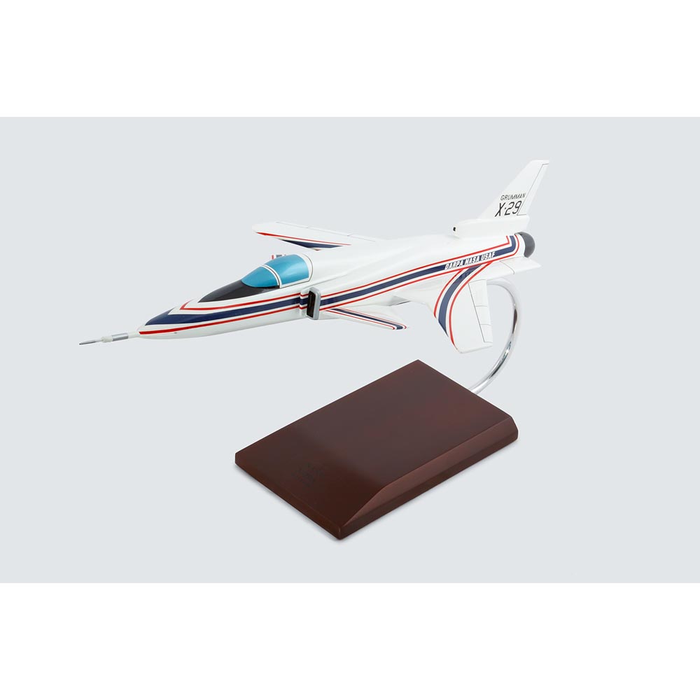 The Grumman X-29 was an experimental aircraft that explored a number of new technologies; the most immediately obvious being the forward-swept wings and canard control surface. The inherent aerodynamic instability of this arrangement required the use of computerized fly-by-wire control, and advanced composite materials were needed to make the wing sufficiently rigid without being unacceptably heavy. The Grumman X-29 first flew in 1984 and two Grumman X-29s were flight tested over the next decade. Two Grumman X-29As were built by Grumman Aerospace Corporation, the first flight taking place in 1984. The aircraft were adapted from existing Northrop F-5A Freedom Fighter airframes (after the proposal had been chosen over a competing one involving a General Dynamics F-16 Fighting Falcon) The Grumman X-29A demonstrated excellent control and maneuvering qualities at an angle of attack up to 45 degrees. There was also a decrease in turbulence. The first Grumman X-29 craft built is now on display in the National Museum of the United States Air Force at Wright-Patterson Air Force Base near Dayton, Ohio. The other Grumman X-29 craft is on display at the Dryden Flight Research Center on Edwards Air Force Base |
