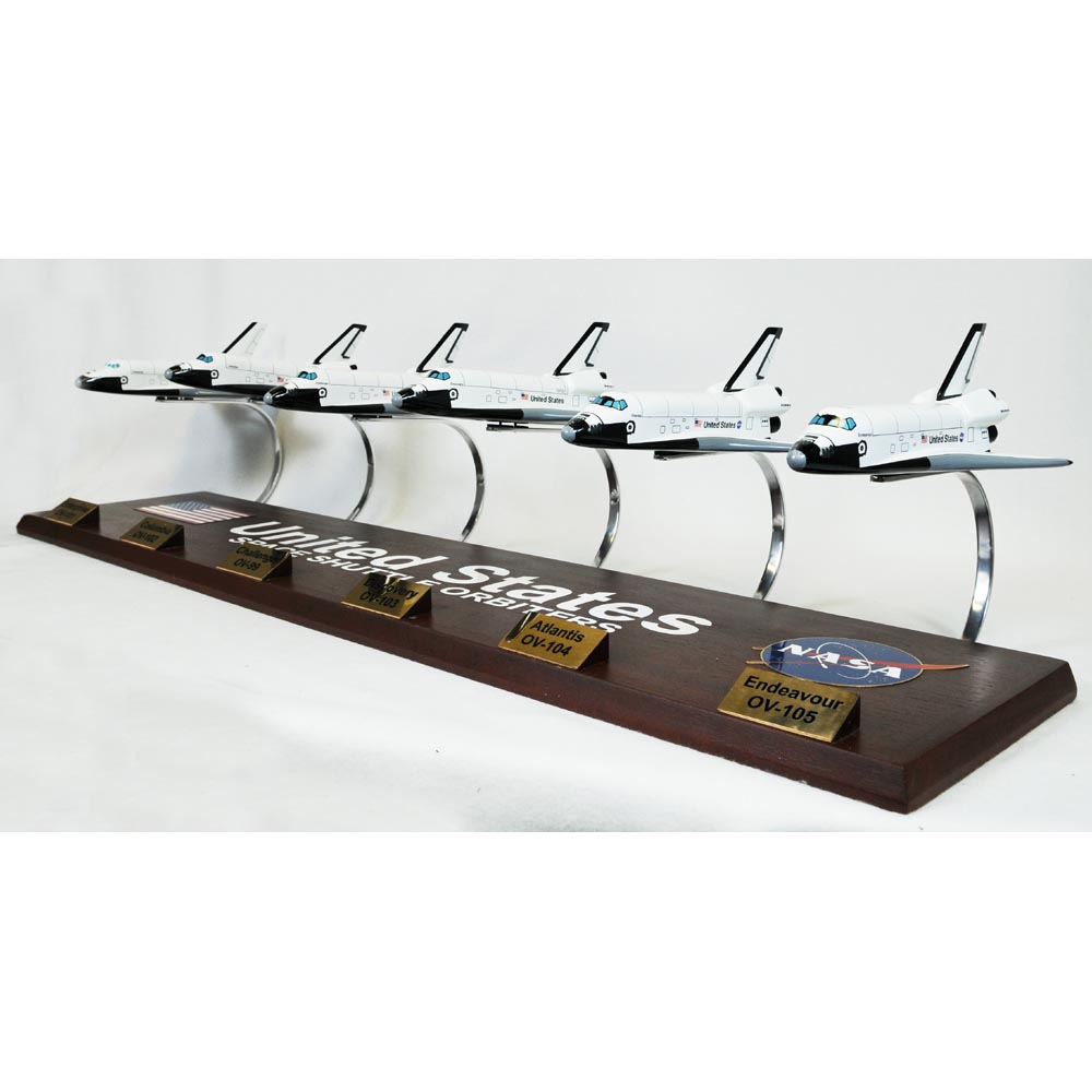 Scale : 1/144 The Space Shuttle Orbiter formally started on January 5, 1972 by Richard Nixion. The first orbiters were manufactured by Rocwell International and then later by Boeing. The space Shuttle Orbiter was designed to replace the expendable launch vehicles that NASA was using to deliver commercial, scientific and applications spacecraft into Earths orbit. The Orbiters main engines and boosters combined allows the orbiter to reach orbit. The orbiter comprises of three primary elements, the first element, a delta-winged orbiter spacecraft having large crew compartment, cargo bay and three main engines, second is its two solid rocket boosters and the third, is an external fuel tank which houses the liquid hydrogen and oxidizer burned in the main engines. The Orbital Maneuvering System (OMS) provides orbital maneuvers which includes insertion, circularizattion, transfer, rendezvous, abort to orbit and abort once around. The Reaction Control System (RCS) provides altitude control and translation along the pitch, roll and yaw axes during the flight phases of orbit insertion, orbit and re-entry. The Thermal Protection System (TPS) covers the outside of the Orbiter, for protection against the cold soak of -121 degree Celsius in space to the 1649 degree Celsius heat of re-entry. The Space Shuttle Orbiters individual fleets are named and numbered similar to ships. All orbiters tend to be externally and identically similar, but they have minor internal differences. The Challenger (OV-099) was destroyed after its liftoff in January 28, 1986. The Eneterprise (OV-101) was used for test landings. The Columbia which was destroyed during reentry in February 1, 2003. And the other orbiters, Discovery, Atlantis, and Endeavor. As of August 21, 2007, Columbia and Challenger are no longer in service |