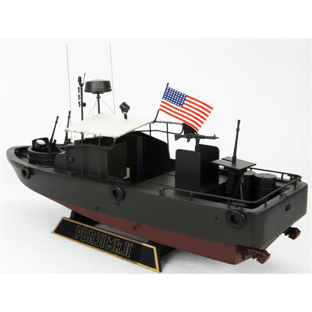 PBR (Patrol Boat, River), also called “Riverine” and “Pibber”, is the US Navy designation for a type of rigid-hulled patrol boat used in the Vietnam War from March 1966 until the end of 1970. They were deployed in a force that grew to 250, the most common craft in the River Patrol Force, Task Force 116, and were used to stop and search traffic in areas such as the Mekong Delta, the Rung Sat Special Zone, the Saigon River and in I Corps, in the area assigned to Task Force Clearwater, in an attempt to disrupt weapons shipments. In this role they frequently became involved in firefights with enemy soldiers on boats and on the shore. PBRs were also used to infiltrate Navy SEAL teams. The Mark II version, 32 feet long and one foot wider beam, had improved drives to reduce fouling, and aluminum gunwales to resist wear. It usually operated with four enlisted men, of which the most senior crewman was designated the boat commander. They were powered by dual 220 hp (164 kW) Detroit Diesel engines with Jacuzzi Brothers water jet drives. The boats reached top speeds of 28.5 knots (53 km/h). The boat was typically armed with twin .50 caliber (12.7 mm) machine guns (the forward 50s), an M60 7.62 mm machine gun, a Mark 18 grenade launcher, and sometimes a 20 mm cannon. The machine gunners and conning tower were protected with ceramic armor. The Patrol Boat Riverine is currently displayed at the New Jersey Naval Museum in Hackensack, NJ. The PBR was featured in the movie Apocalypse Now (1979). This is the very same type of fiberglass craft used in the film. The units using the PBRs were often called “The Brown Water Navy” (and those rivers were pretty brown) and also “Swift Boats” (and at 30 Knots fully loaded they PBRs were swift). |