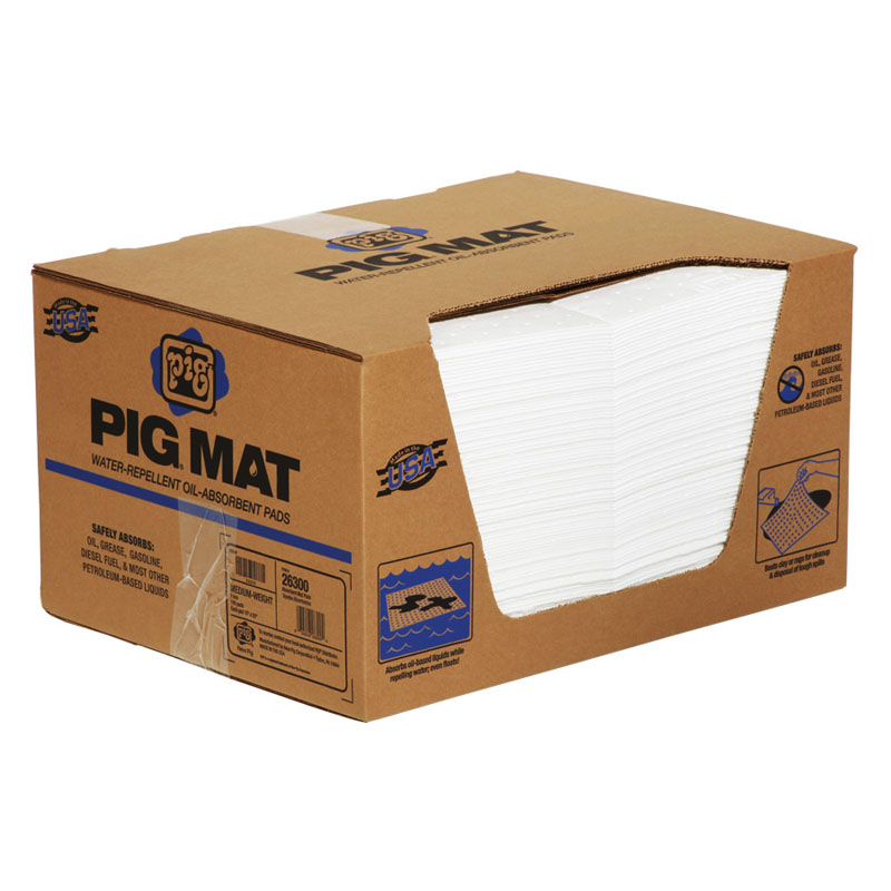 Clean up oil-based spills without wasting absorbency on water. Unlike rags or floor sweep, PIG® Water-Repellent Oil-Absorbent Mat quickly soaks up gas and oil but repels water from rain, slush, washdowns, ponds and sumps and more! |