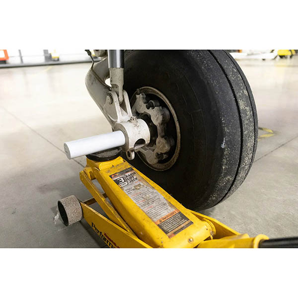 The Jack Adapter allows 1 main wheel to be jacked up efficiently for quick tire changes at remote runways or at your home base. Works with commonly available floor jacks and bottle jacks (contact us if you need jack recommendations or an adapter for your bottle jack). You know that tire blowouts happen at the most unexpected time when you're furthest from support and there are no fancy wing jacks to be found. Be prepared; keep a jack adapter in every PC-12. The Jack Adapter is constructed of machined steel with a powder-coated finish. |