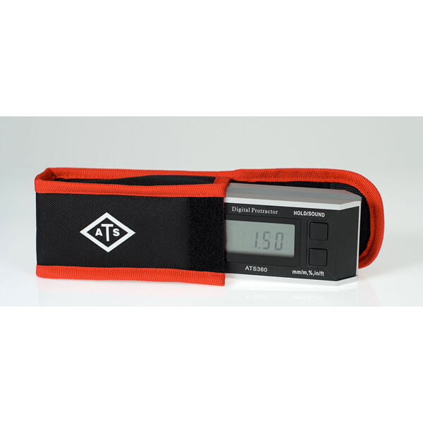 | The ATS Digital Protractor is an innovative measuring tool that provides an immediate, digital reading of all angles in a 360 degree range. It provides absolute measurement as well as relative measurement, making it ideally suited to measure aileron deflection, flap movement, and propeller pitch. The 2.75" wide by 1.50" high LCD screen display remains upright to view at all angles. This Self-calibrating unit can convert between angles and slopes; the machined aluminum frame is for durability. This unit is accurate to within .05 degrees of level or plumb. Includes sturdy carrying case with a belt clip. |