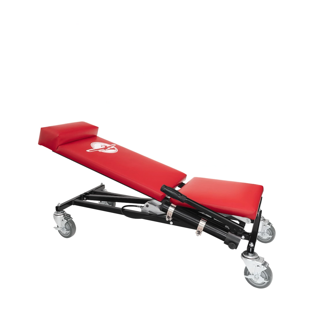 The Ez Creeper Model H is a hand-powered hydraulic aviation creeper that combines durability, precision, and ergonomics, allowing technicians to work safely under aircraft with minimal strain. The Model H Hydraulic Aviation Creeper is designed for aviation technicians who demand comfort, efficiency, and portability. Unlike other creepers, it features a hand-powered hydraulic pump, allowing smooth, light-touch adjustments without relying on electricity or batteries. Constructed from lightweight aluminum, its easy to transport between work areas while remaining durable enough for frequent use. Its ergonomic, low-profile design improves maneuverability in tight spaces, while cushioned support and optimized leverage reduce strain during long maintenance tasks. The Model H enhances workflow, safety, and comfort in any aviation workshop. Upgrade your aviation workshop with the Model H Hydraulic Aviation Creeper lightweight, hand-powered, and designed for professional technicians. |