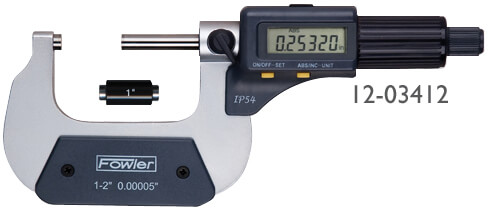 Electronic IP54 Outside Micrometer. Quick, accurate, easy-to-use and coolant, water and oil resistant to IP54 standards, Fowler's Electronic IP54 Outside Micrometers offer the same features as Fowler's standard electronic micrometers, but are robust enough to perform in situations where regular electronic micrometers fail. |