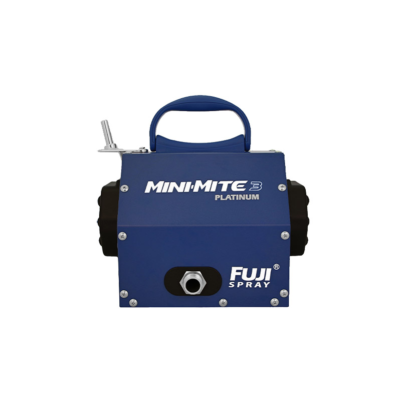 | Paint faster and better with the Mini-Mite 3 PLATINUM system. This system features the Fuji T-Model gravity spray gun and has the same powerful three-stage turbine motor as used in Q3 models. This system is compatible with all coatings when properly thinned and you can adjust the size of the fan pattern with the control knob on the spray gun. This portable system includes a heavy-duty metal case with a spray gun holder, the Mini-Mite 3 PLATINUM Turbine, a 25 ft. hi-flex hose, the T-75G non-bleed spray gun, a viscosity cup, a cleaning brush and a wrench. |