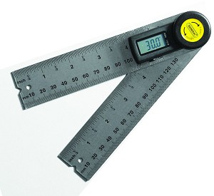 These new angle finders combine the ruggedness of analog rulers (standard and metric) together with the digital technology needed for complete accuracy when measuring inside, outside and reverse angles. Precise measurements prevent waste by facilitating exact miter cuts. One button activates the reverse angle function, a hold button digitally saves the measurement and the large ergonomic locking knob saves the angle manually. A big LCD readout makes measurements extremely easy to read while an innovative center check notch enables exact ruler placement marking. The Models 822 (Patent Pending) are ideal for framing, custom furniture-building, stair and patio construction, flooring, tiling basically all woodworking, carpentry and contractor needs in the shop or in the field. |