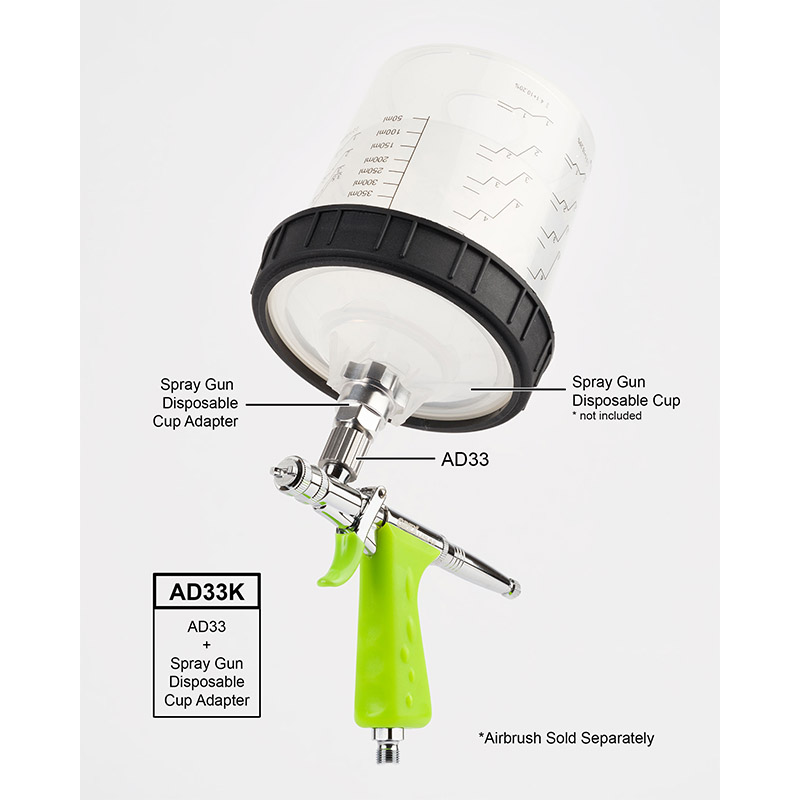 | Use this adapter to connect your Grex airbrush to a variety of disposable paint cups. |
