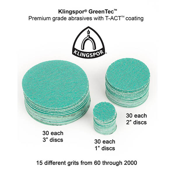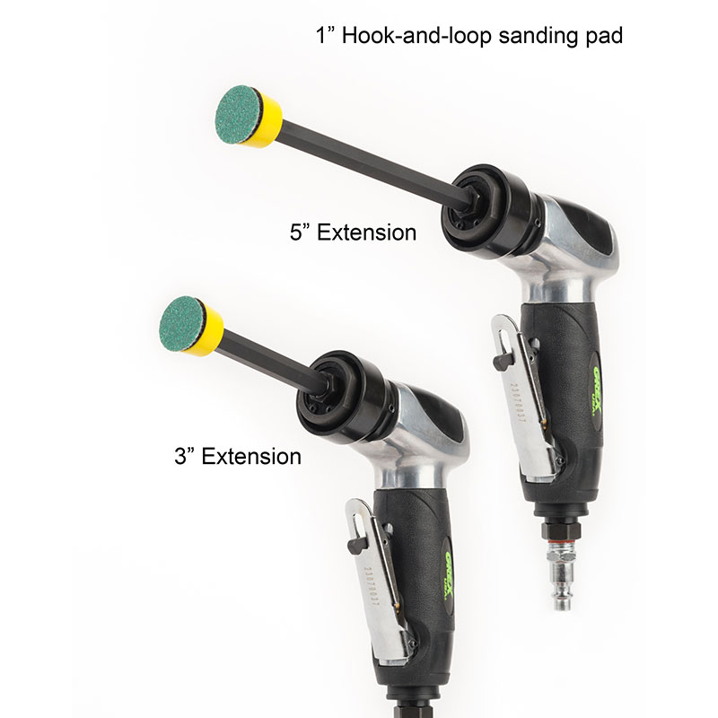 The defining (and patented) feature of the AOS368 sander is its unique 105-degree angle which provides better ergonomics than traditional right-angle sanders. With its compact size, it was designed for detailed sanding, spot sanding, reaching in to corners and for getting into tight areas where larger sanders can’t reach. The precision milled hardened steel gears and ball bearings on both the motor and output shafts provides smooth, consistent and long-lasting operation. This kit includes all three hook and loop sanding pad sizes and all two extension shaft lengths so you can customize this tool to accommodate your project regardless of how big or small or deep of a surface you need to work on. What makes this kit complete is over $30 worth of premium Klingspor® GreenTec sanding disc. A sample pack for each of the 3 sanding pad sizes, 1”, 2” and 3”, is included. And each pack contains 2 discs of each of the 15 grits ranging from 60 all the way to 2000. Discs are made with a 3mm poly film backing that allows for dry or wet sanding. And the new T-ACT coating delivers longer life with tighter and more consistent cutting. Use it on practically any material or surface. Suggested Applications: Precision and detailed sanding on metal, wood and more surfaces. |