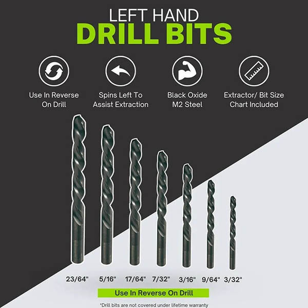 The Extractor is designed to be hammered Laser-marked size and drill size info for greater visibility Premium S2 steel construction for increased strength and durability Premium coating for increased corrosion resistance Unique non-tapered geometry enables increased GRIP with the fastener sidewall Unique Bi-Directional design for loosening and tightening of damaged fasteners |