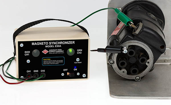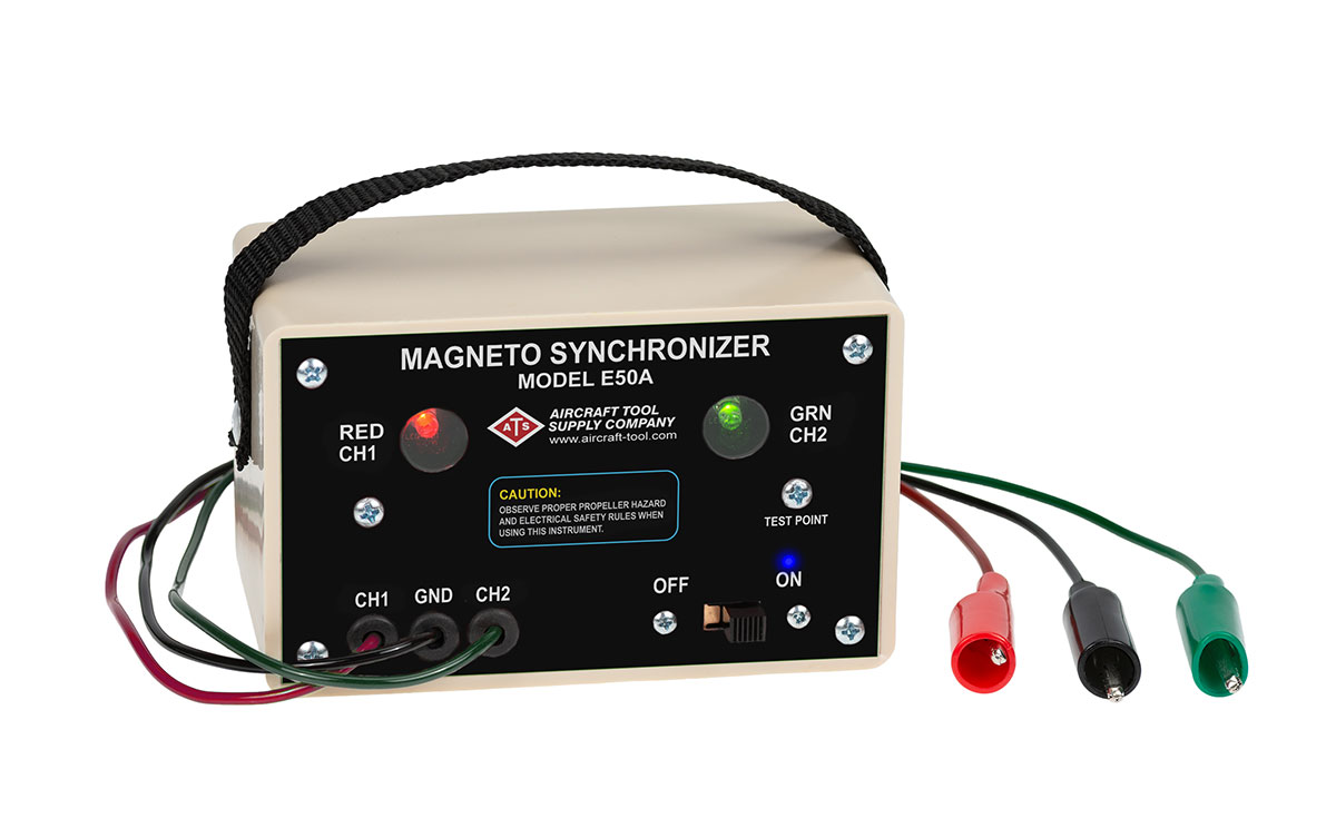 The ATS E50A Magneto Synchronizer is a modern redesign of the classic test instrument used by aviation mechanics around the world for over 50 years. It uses surface-mounted (SMD) micro-circuitry to eliminate the need for the bulky vibrator, and heavy transformers. The new technology of the E50A uses low voltage signals to measure the inductance of the magneto and precisely detect the moment the points break, without any false readings. The ATS E50A also features enhancements to make your job easier, such as a Built-In Calibrated Test Point to validate your tester before each use; a battery monitor to give you plenty of warning before your tester runs out of power; and Quiet-Mode operation that alerts you only when the points break - so no more annoying "buzz-box" always screaming at you when you're trying to do a test. |