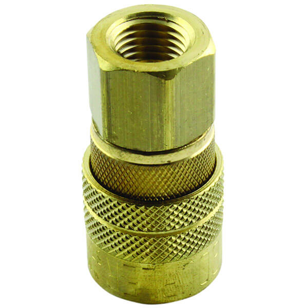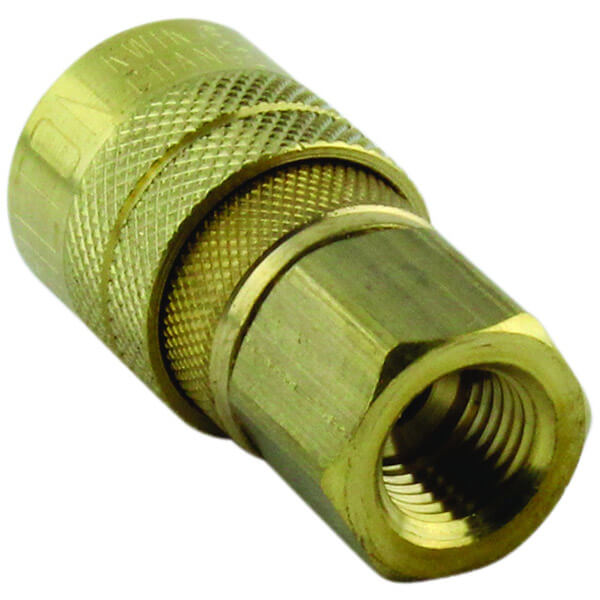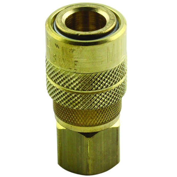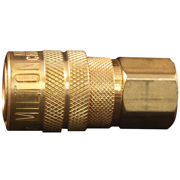 Milton 1/4" FNPT Female M-Style KWIK-CHANGE® Coupler. Milton Industries is proud to be the creator and leader of the pneumatic industry standard M-Style coupler. This 1/4" FNPT M style brass coupler has a 1/4" basic flow size, offering a maximum of 300 PSI. Comes with Buna-N seal and air flow of 40 SCFM. Milton M-Style Kwik Change couplers are made of brass, while M-Style Kwik Change plugs are made of case-hardened steel and are plated to resist rust. This collection of couplers and plugs: