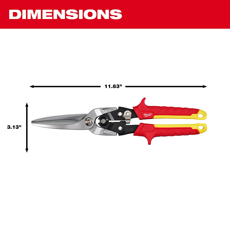 Milwaukee® Long Cut Aviation Snips are built for long life and clean cuts. Forged blades with laser-hardened edges are durable and deliver long life. Sharp, serrated blades provide smooth and clean cuts. Our handles are designed to deliver easy, low-effort cutting. BOLT LOCK™ ensures the blades won't loosen and chrome plating provides rust protection. The color-coded handles allow for easy identification on the job. The metal lock secures the tool for storage and is easily operated with one hand. The 3" long cut blade is ideal for long straight cuts. |