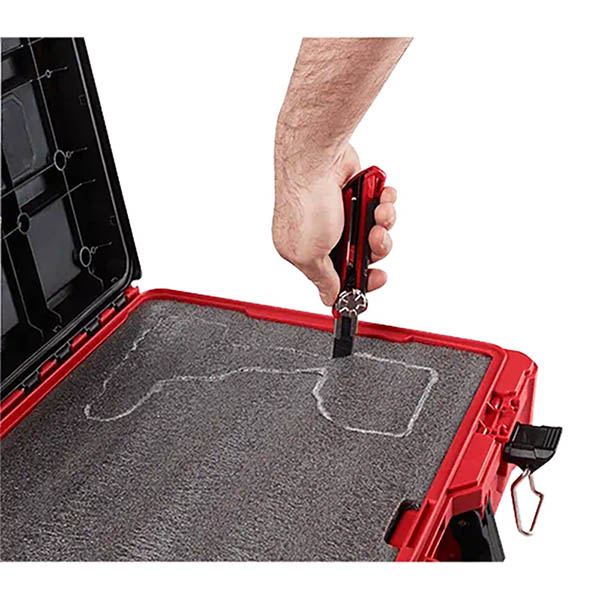 Tool Case with Customizable Foam Insert has an impact-resistant molded base that users can connect with all other Packout system components via integrated locking cleats. This durable tool storage box is constructed with impact resistant polymer and a metal reinforced locking point so it can withstand harsh job site environments. Heavy duty tool case is IP65 rated weather seal protects tools and accessories from rain and other jobsite debris. The Tool Case has a 75 pound weight capacity and includes a customizable foam insert, which allows you to trace and cut out custom pockets to securely store and protect your tools. Packout Modular Storage System allows you to customize and build your own storage system to easily transport and organize your tools and accessories. |