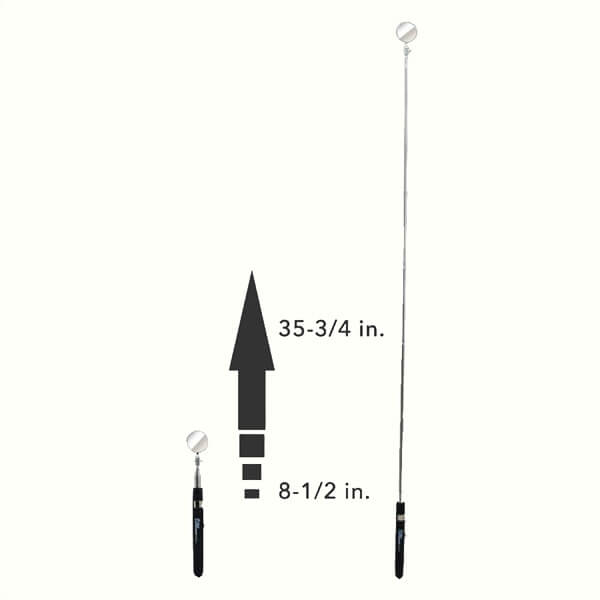 The HTE-2 Telescopes from 6-1/2" to 35" for fast and accurate inspection. Ullman's standard non-slip grip helps prevent drops and slipping in wet or oily hands while a handy pocket clip adheres the HTE-2 to clothing for secure carry and convenient access. |