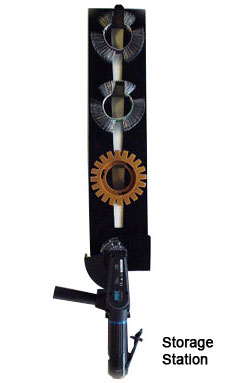 MBX Pneumatic drive unit: Easy handling, lightweight - 1.1 kilograms, high torque, safe to use!Specially developed for the MBX brush-belt and MBX Vinyl Zapper systems. The high output rpm of the compressed-air turbine (21,000 rpm) is reduced to 3,500 rpm by means of a planetary gear and toothed belt; torque increases. This gives our MBX pneumatic drive units an optimised power profile. MBX brush-belts and MBX eraser wheels work as a direct extension to the drive shaft, i.e., there is no lateral centre of gravity and MBX drive units operate in-line. Work in hard-to-reach areas or in the removal of tough, thick, sticky materials (e.g. compounding materials, underbody corrosion) with optimal ventilation. MBX Pneumatic Starter Set For the removal of seam sealant, corrosion, paint, vinyl decals, glue on aluminum and alloy. SET 1 P/N 12-01394 MP-3500 - MBX Pneumatic Power Tool S (3500 rpm) with adapter system for 23mm belts/31mm rubber eraser. AA-0011 - Adapter for 11mm wire belts BS-M11X - V2A Wire Belt, Med., 11mm angled tips BS-F11 - V2A Brush Belt, Fine, 11mm RE-0023 - Rubber Eraser, 31mm MBX Electric Starter Set For the removal of seam sealant, corrosion, paint, vinyl decals, glue on aluminum and alloy. SET P/N 12-01396 ME-3200 - MBX Electric Power Tool A (3200 rpm) with adapter system for 23mm belts/31mm rubber eraser AA-0011 - Adapter for 11mm wire belts BS-M11X - V2A Wire Belt, Med., 11mm angled tips BS-F11 - V2A Brush Belt, Fine, 11mm RE-0023 - Rubber Eraser, 31mm MBX Accessories Adapter System P/N 12-01397 Made of high quality die cast aluminium, with safety elements for 11mm Wire Brush Belts. Adapter System P/N 12-01398 Made of high quality die cast aluminium, with safety elements for 23mm Brush Belts/31mm Rubber Eraser. Storage Station P/N 12-01399 For storage of up to 15 wire belts or 9 rubber erasers and one MBX Power Tool (machine, belts, erasers not included). Dust Intake P/N 12-01401 For MBX Pneumatic Power Tool (power tool not included). |