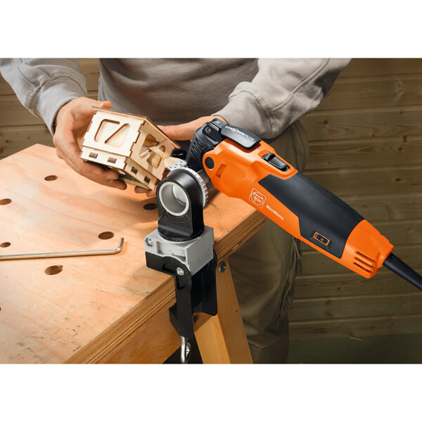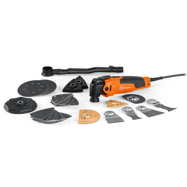 The FEIN MultiMaster FMM 350QSL Top Kit uses the new, tool-free, snap-in Starlock mounting system for easier, safer blade and accessory changes. This comprehensive kit includes the Multimaster 350QSL and accessories for sawing, scraping, grinding, sanding and dust extraction. The Starlock mounting system increases torque transfer and power efficiency, which reduces wear and tear on the tool and extends its service life. The ergonomic handle design, minimal vibration and reduced noise make using the tool more comfortable for you. Fits all Starlock and Starlock Plus blades and accessories.